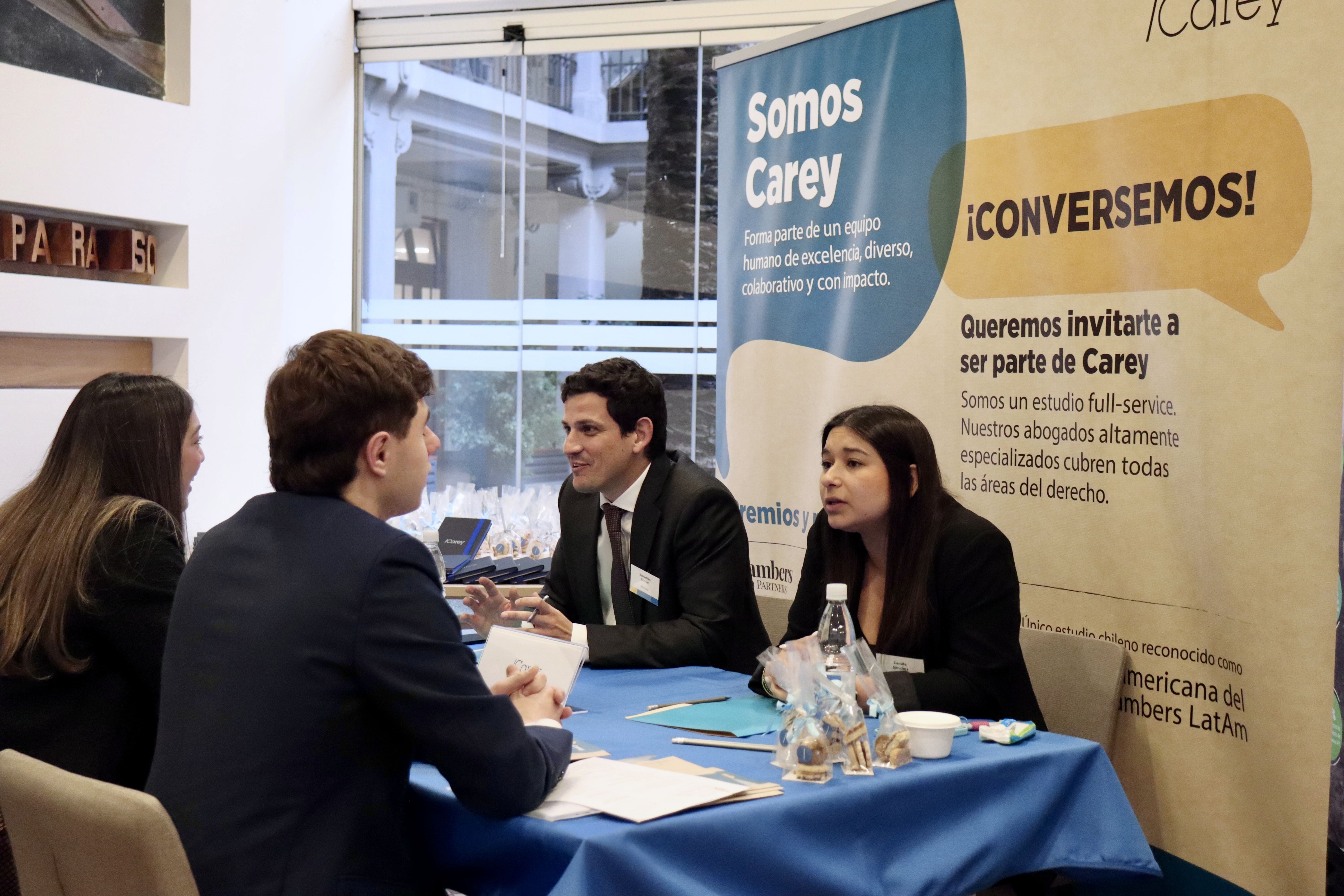 Hasta la Casa Central de la PUCV llegaron representantes de más de 20 estudios de abogados e instituciones públicas de gran prestigio a nivel nacional, quienes se reunieron con estudiantes y egresados de la Escuela en entrevistas y diálogos orientados a potenciar la empleabilidad y fortalecer los primeros pasos en el mundo profesional.